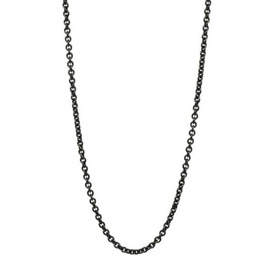28inch long Blackened Sterling Silver Cable Chain. 1.7mm width with a lobster clasp. Adjustable to 26inches and 27inches.